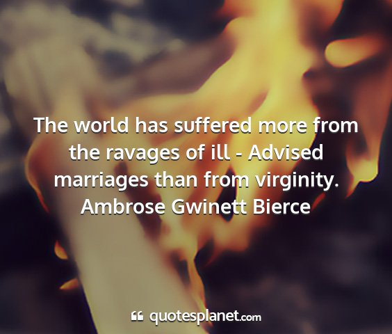 The world has suffered more from the ravages of ill - Advised marriages than from virginity.Ambrose Gwinett Bierce