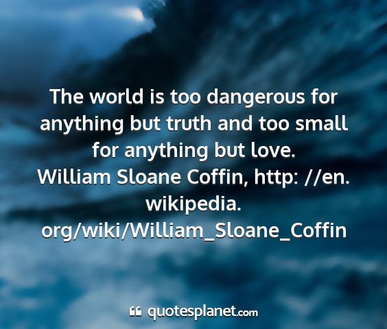 The world is too dangerous for anything but truth and too small for anything but love.William Sloane Coffin, http: //en. wikipedia. org/wiki/William_Sloane_Coffin