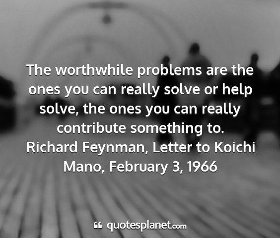 The worthwhile problems are the ones you can really solve or help solve, the ones you can really contribute something to.Richard Feynman, Letter to Koichi Mano, February 3, 1966