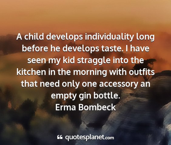 A child develops individuality long before he develops taste. I have seen my kid straggle into the kitchen in the morning with outfits that need only one accessory an empty gin bottle.Erma Bombeck