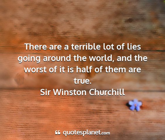 There are a terrible lot of lies going around the world, and the worst of it is half of them are true.Sir Winston Churchill