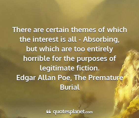 There are certain themes of which the interest is all - Absorbing, but which are too entirely horrible for the purposes of legitimate fiction.Edgar Allan Poe, The Premature Burial