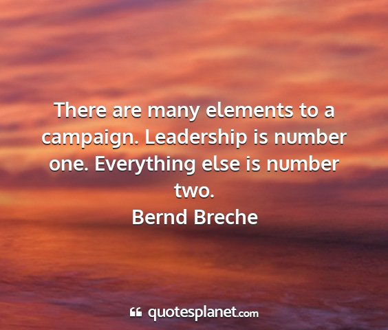 There are many elements to a campaign. Leadership is number one. Everything else is number two.Bernd Breche