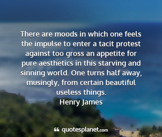There are moods in which one feels the impulse to enter a tacit protest against too gross an appetite for pure aesthetics in this starving and sinning world. One turns half away, musingly, from certain beautiful useless things.Henry James