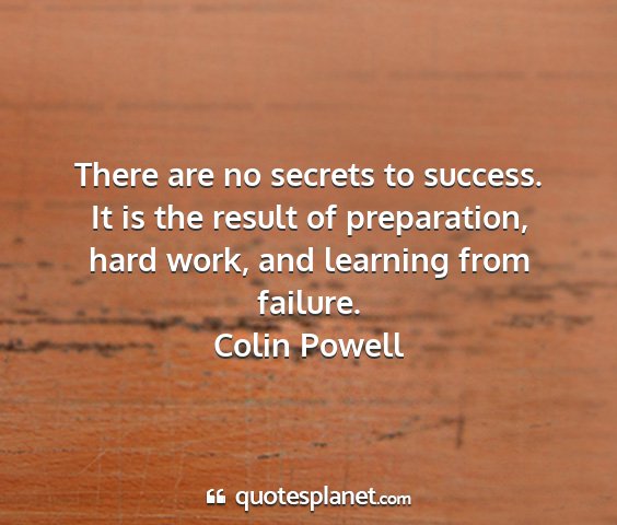There are no secrets to success. It is the result of preparation, hard work, and learning from failure.Colin Powell