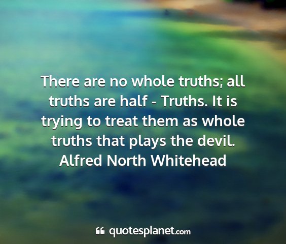 There are no whole truths; all truths are half - Truths. It is trying to treat them as whole truths that plays the devil.Alfred North Whitehead