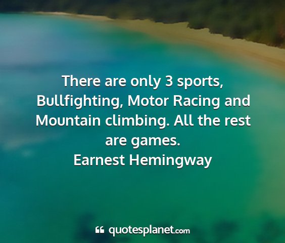There are only 3 sports, Bullfighting, Motor Racing and Mountain climbing. All the rest are games.Earnest Hemingway