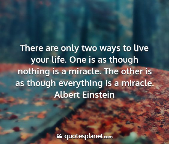 There are only two ways to live your life. One is as though nothing is a miracle. The other is as though everything is a miracle.Albert Einstein