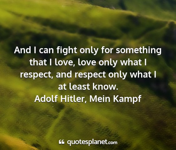 And I can fight only for something that I love, love only what I respect, and respect only what I at least know.Adolf Hitler, Mein Kampf