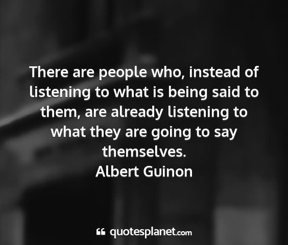 There are people who, instead of listening to what is being said to them, are already listening to what they are going to say themselves.Albert Guinon