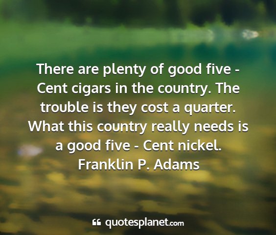 There are plenty of good five - Cent cigars in the country. The trouble is they cost a quarter. What this country really needs is a good five - Cent nickel.Franklin P. Adams