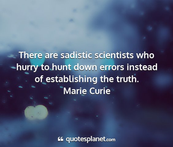 There are sadistic scientists who hurry to hunt down errors instead of establishing the truth.Marie Curie