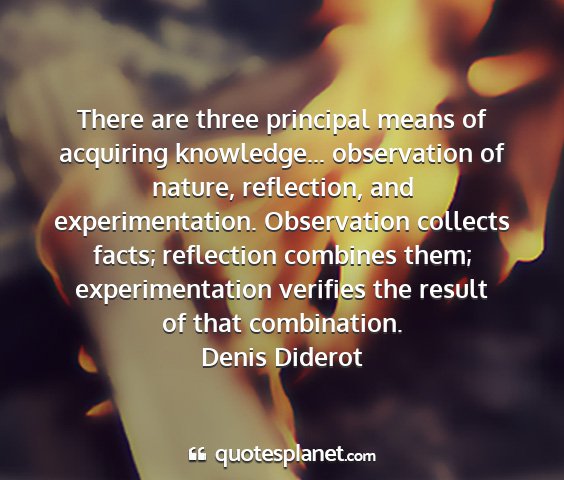 There are three principal means of acquiring knowledge... observation of nature, reflection, and experimentation. Observation collects facts; reflection combines them; experimentation verifies the result of that combination.Denis Diderot