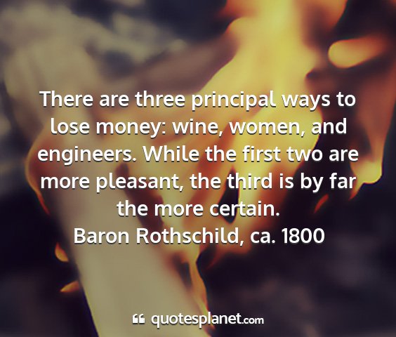 There are three principal ways to lose money: wine, women, and engineers. While the first two are more pleasant, the third is by far the more certain.Baron Rothschild, ca. 1800