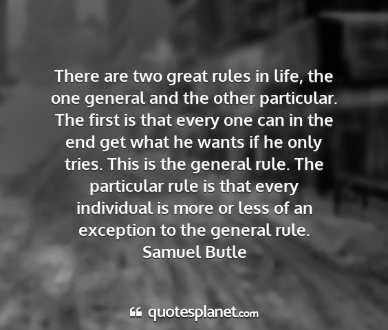 There are two great rules in life, the one general and the other particular. The first is that every one can in the end get what he wants if he only tries. This is the general rule. The particular rule is that every individual is more or less of an exception to the general rule.Samuel Butle