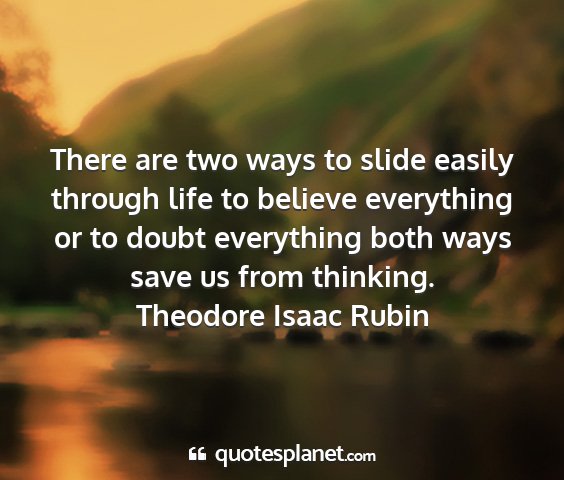 There are two ways to slide easily through life to believe everything or to doubt everything both ways save us from thinking.Theodore Isaac Rubin
