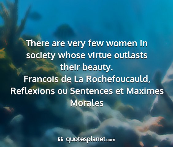 There are very few women in society whose virtue outlasts their beauty.Francois de La Rochefoucauld, Reflexions ou Sentences et Maximes Morales