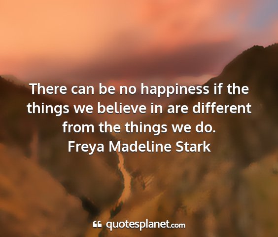 There can be no happiness if the things we believe in are different from the things we do.Freya Madeline Stark