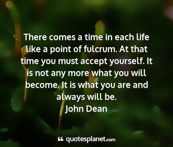 There comes a time in each life like a point of fulcrum. At that time you must accept yourself. It is not any more what you will become. It is what you are and always will be.John Dean