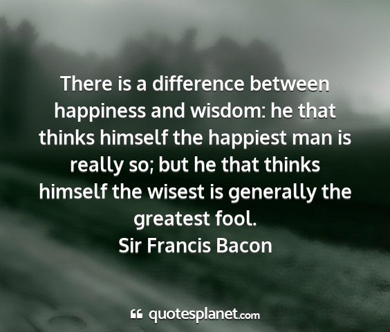 There is a difference between happiness and wisdom: he that thinks himself the happiest man is really so; but he that thinks himself the wisest is generally the greatest fool.Sir Francis Bacon