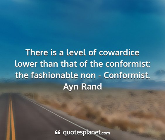 There is a level of cowardice lower than that of the conformist: the fashionable non - Conformist.Ayn Rand