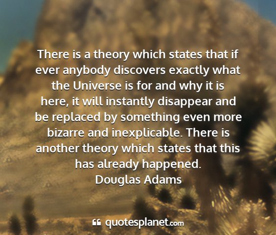 There is a theory which states that if ever anybody discovers exactly what the Universe is for and why it is here, it will instantly disappear and be replaced by something even more bizarre and inexplicable. There is another theory which states that this has already happened.Douglas Adams