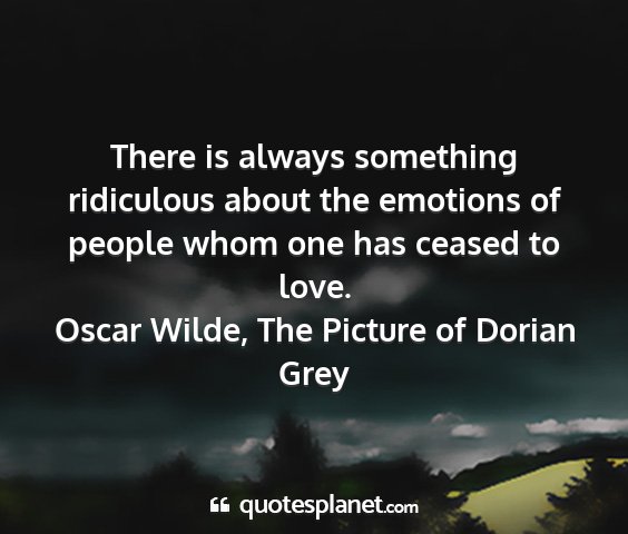 There is always something ridiculous about the emotions of people whom one has ceased to love.Oscar Wilde, The Picture of Dorian Grey