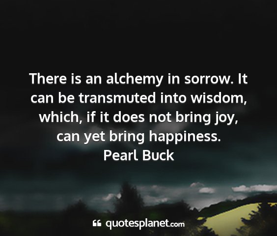There is an alchemy in sorrow. It can be transmuted into wisdom, which, if it does not bring joy, can yet bring happiness.Pearl Buck