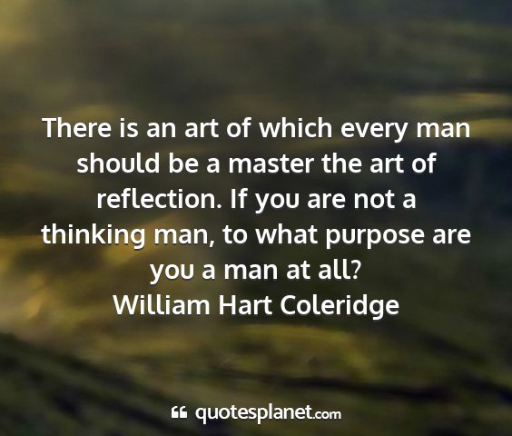 There is an art of which every man should be a master the art of reflection. If you are not a thinking man, to what purpose are you a man at all?William Hart Coleridge