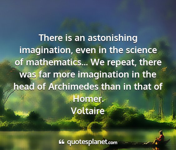 There is an astonishing imagination, even in the science of mathematics... We repeat, there was far more imagination in the head of Archimedes than in that of Homer.Voltaire