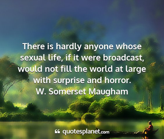 There is hardly anyone whose sexual life, if it were broadcast, would not fill the world at large with surprise and horror.W. Somerset Maugham