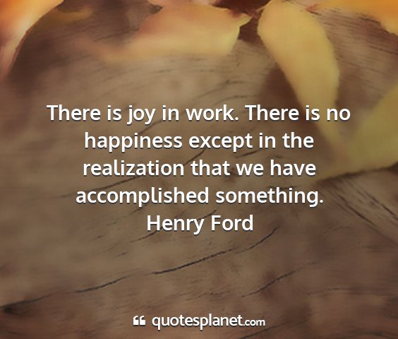 There is joy in work. There is no happiness except in the realization that we have accomplished something.Henry Ford