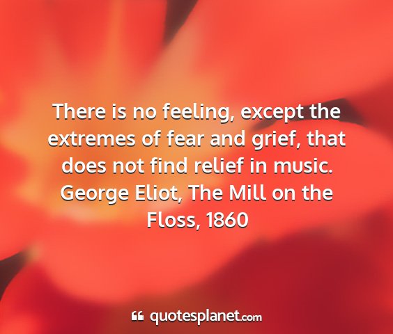 There is no feeling, except the extremes of fear and grief, that does not find relief in music.George Eliot, The Mill on the Floss, 1860
