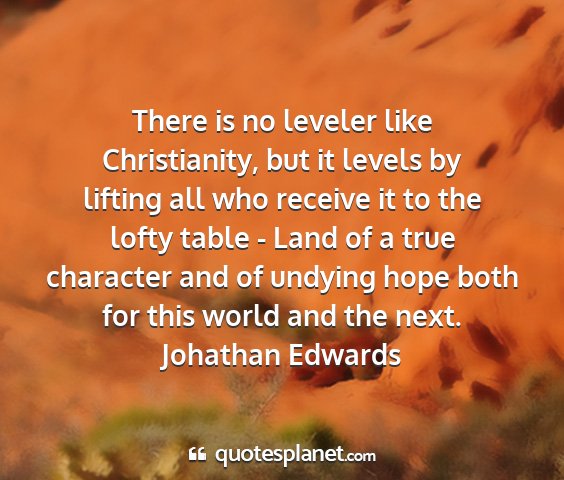 There is no leveler like Christianity, but it levels by lifting all who receive it to the lofty table - Land of a true character and of undying hope both for this world and the next.Johathan Edwards