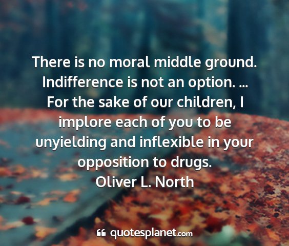 There is no moral middle ground. Indifference is not an option. ... For the sake of our children, I implore each of you to be unyielding and inflexible in your opposition to drugs.Oliver L. North