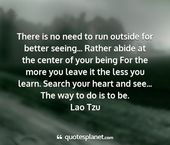 There is no need to run outside for better seeing... Rather abide at the center of your being For the more you leave it the less you learn. Search your heart and see... The way to do is to be.Lao Tzu