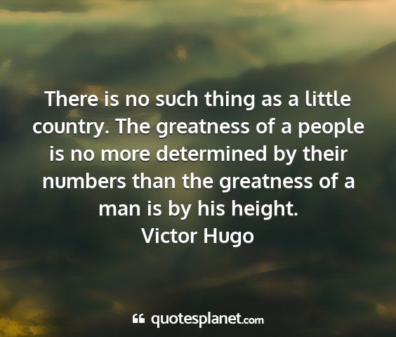 There is no such thing as a little country. The greatness of a people is no more determined by their numbers than the greatness of a man is by his height.Victor Hugo