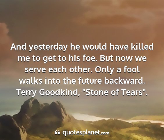And yesterday he would have killed me to get to his foe. But now we serve each other. Only a fool walks into the future backward.Terry Goodkind, "Stone of Tears".