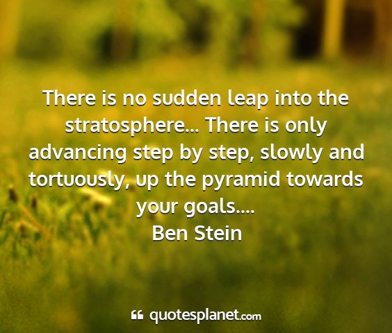 There is no sudden leap into the stratosphere... There is only advancing step by step, slowly and tortuously, up the pyramid towards your goals....Ben Stein