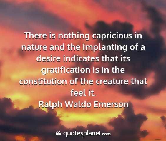 There is nothing capricious in nature and the implanting of a desire indicates that its gratification is in the constitution of the creature that feel it.Ralph Waldo Emerson