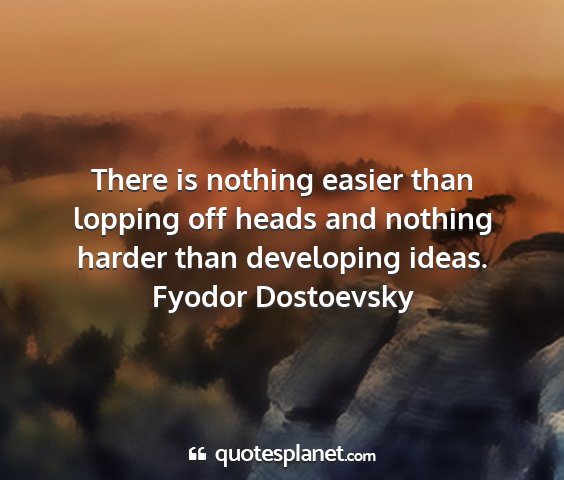 There is nothing easier than lopping off heads and nothing harder than developing ideas.Fyodor Dostoevsky