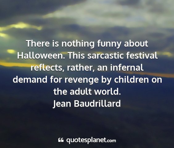 There is nothing funny about Halloween. This sarcastic festival reflects, rather, an infernal demand for revenge by children on the adult world.Jean Baudrillard