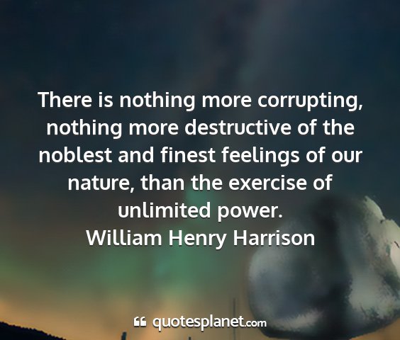 There is nothing more corrupting, nothing more destructive of the noblest and finest feelings of our nature, than the exercise of unlimited power.William Henry Harrison