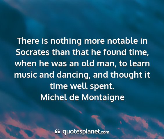 There is nothing more notable in Socrates than that he found time, when he was an old man, to learn music and dancing, and thought it time well spent.Michel de Montaigne