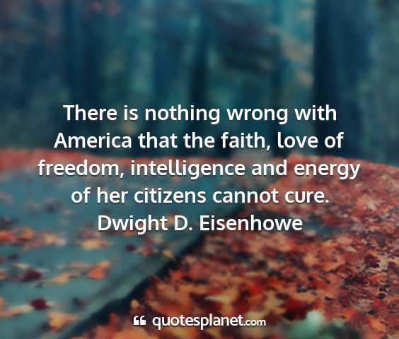 There is nothing wrong with America that the faith, love of freedom, intelligence and energy of her citizens cannot cure.Dwight D. Eisenhowe