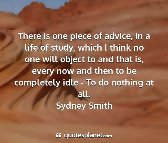 There is one piece of advice, in a life of study, which I think no one will object to and that is, every now and then to be completely idle - To do nothing at all.Sydney Smith