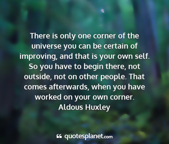There is only one corner of the universe you can be certain of improving, and that is your own self. So you have to begin there, not outside, not on other people. That comes afterwards, when you have worked on your own corner.