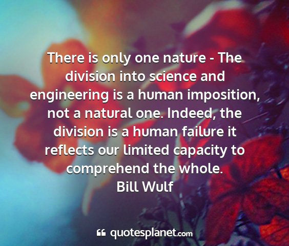 There is only one nature - The division into science and engineering is a human imposition, not a natural one. Indeed, the division is a human failure it reflects our limited capacity to comprehend the whole.Bill Wulf