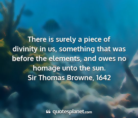 There is surely a piece of divinity in us, something that was before the elements, and owes no homage unto the sun.Sir Thomas Browne, 1642