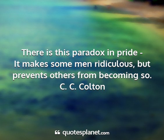 There is this paradox in pride - It makes some men ridiculous, but prevents others from becoming so.C. C. Colton